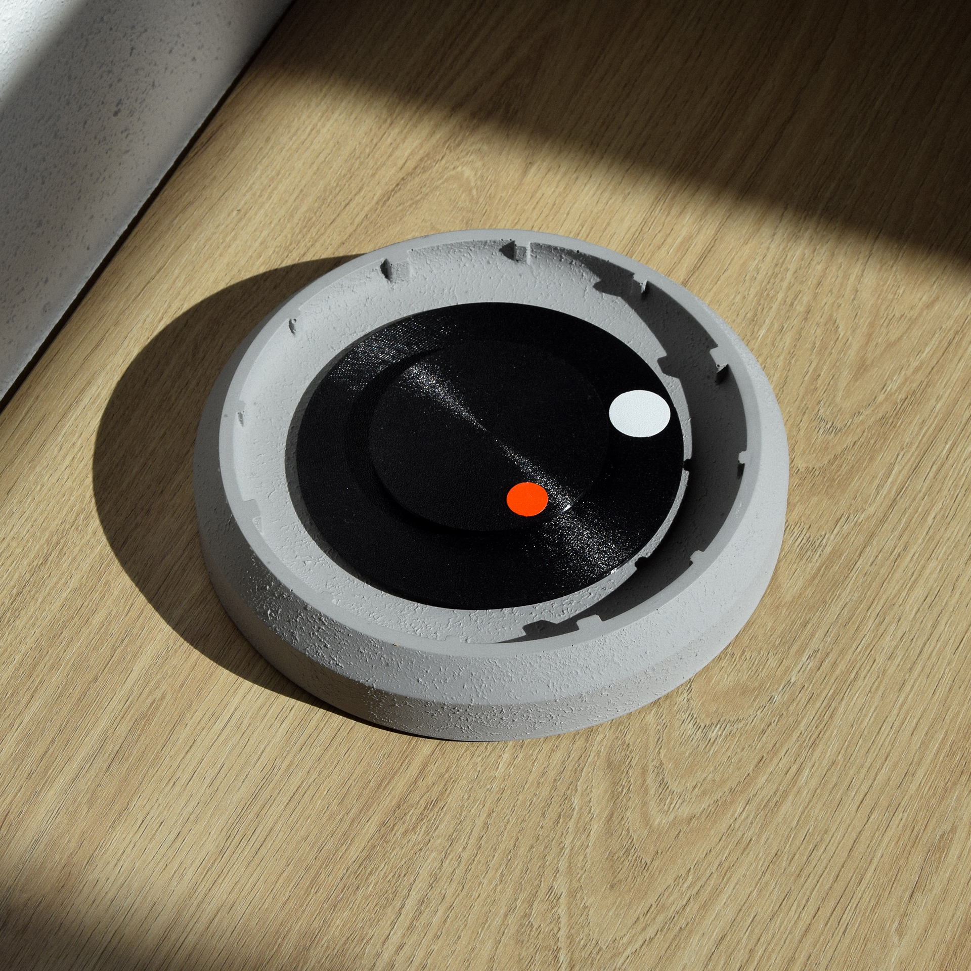 24 heures, c'est le temps que met la terre a faire un tour sur elle-même. L'essence même du temps repose sur le mouvement des planètes, astres et étoiles. Orbite matérialise ces mouvements en remplaçant les aiguilles traditionnelles par des disques pivotants autour d'un axe.